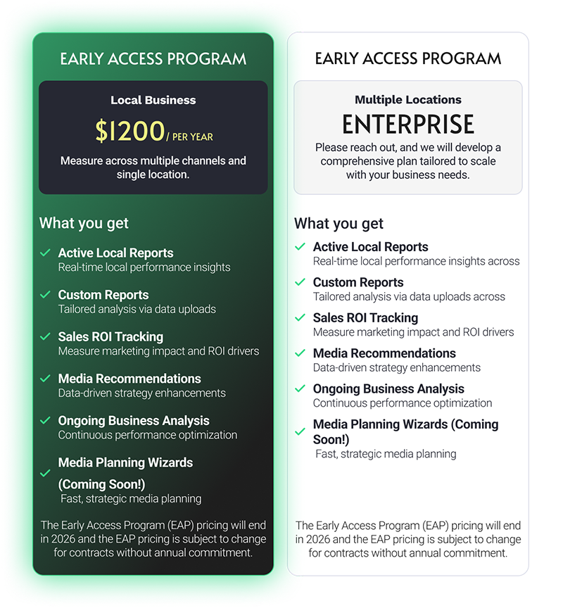 We offer flexible pricing based on the size of your business, media spend, and reporting needs. Whether you’re a small team or managing campaigns across multiple markets, we’ll tailor a plan that fits.